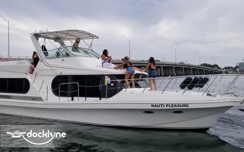 Ride in style with Nauti Pleasure Charters. Based in Destin, Florida, our luxury yacht charter is the ideal boat to take on a cruise off of the Emerald Coast. Book a boat charter today so you and your friends and family can enjoy a fun and relaxing ride on our private yacht. Our yacht features a large and roomy main salon, two staterooms each with its own private bathroom, full galley with refrigerator/freezer, bar, two sun-lounges aft and forward and plenty of deck space to entertain.