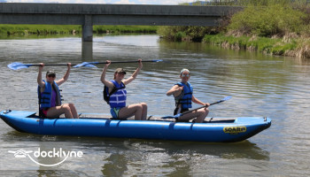 Inflatable Canoe Sit on a bench seat above the water with a bend in the kneesGreat option for a family, seats can be replaced with pads for small children