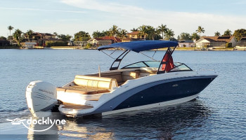 Rent a boat to explore Cape Coral and SWFL on water, with this Sea Ray 270 SDSX Bowrider boat featuring a 300 HP Mercury Verado outboard motor. This Sea Ray rental boat features a Raymarine GPS with digital depth sounder, 2 freshwater showers (front and rear), an on-board sink, on-board porta potty, on-board cockpit table, a stereo music system wit...