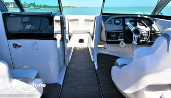 This boat is the perfect combination of size and functionality, also featuring a Garmin Marine GPS, a pressurized water system that services the galley with a transom shower and a front shower. It offers an 25 quart IGLOO cooler, on-board porta potty and a stereo music system with Bluetooth and 4 marine speakers.