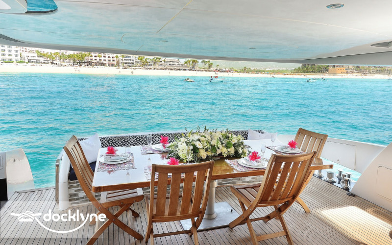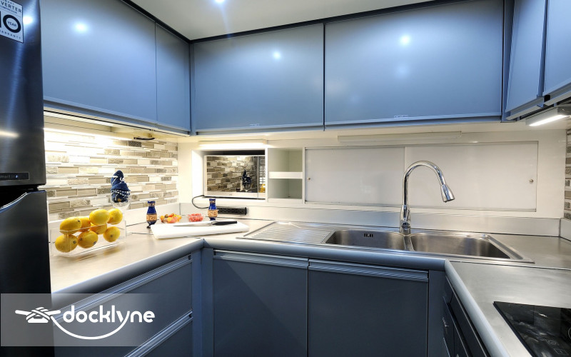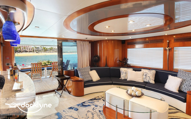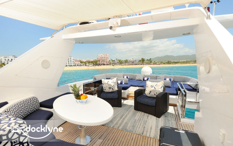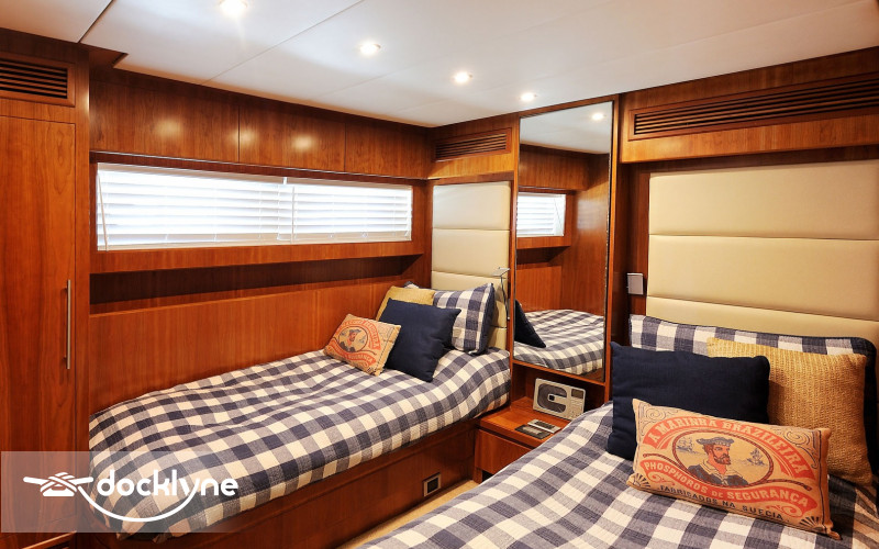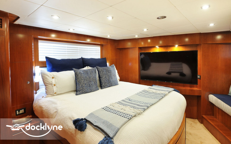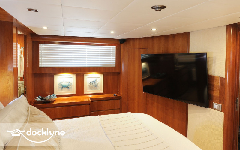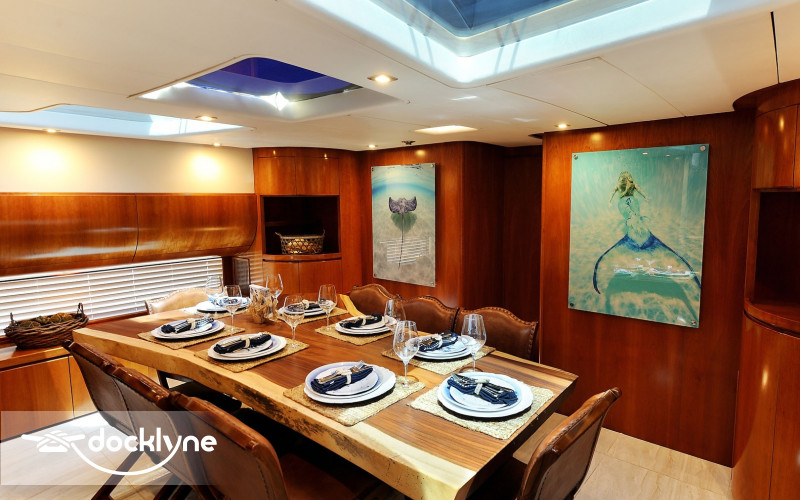 The tastefully decorated salon features lavish semi-circular sofas, a pop-up TV, a bar, and a day head. Up a few steps, you will find a beautifully furnished dining room for when you prefer to dine in air-conditioned comfort. The lower deck has four staterooms with the master full-beam, situated aft, twin cabins to port and starboard. Mid-ship and forward, the spacious VIP has a queen berth.