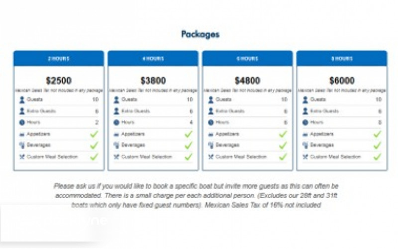 To keep pace with the times and the growth of a more sophisticated market we have gradually added more vessels and can now offer everything from the basic Baja Panga (skiff with outboard motor) to mega yachts. Still the favorite of most Cabo visitors are our Standard cruisers, seaworthy, clean boats between 28 and 31 feet, with very experienced crews which are great value for money.