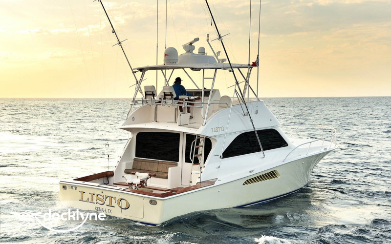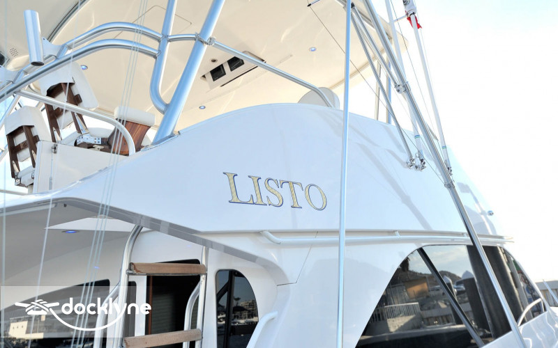 This immaculate Viking is quite a head turner. Her eye-catching pale yellow hull and top of the line electronics make Listo perfect for the serious professional fisherman seeking the best in comfort. Twin 2200 HP Mann engines provide a top speed of 44 knots. Electronic trolling valves are included. The spacious cockpit provides mezzanine seating, t...