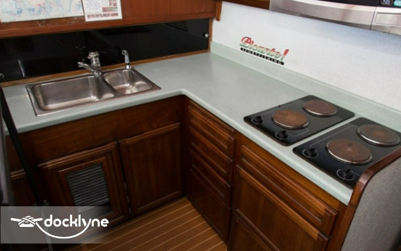 “Picante” comes with a full selection of International two speed reels matched to custom rods, complete array of fishing and navigational electronics, custom live bait system, sound system, spacious head.