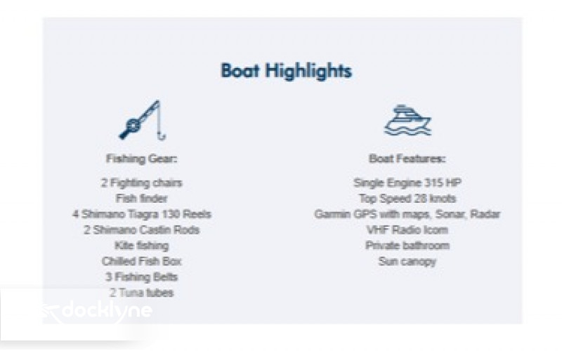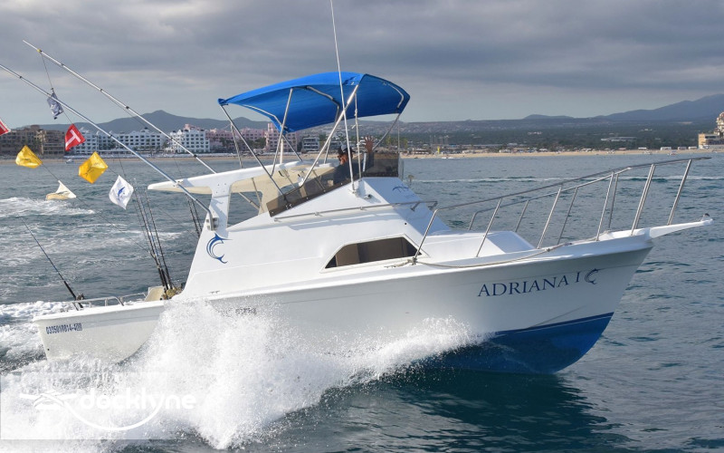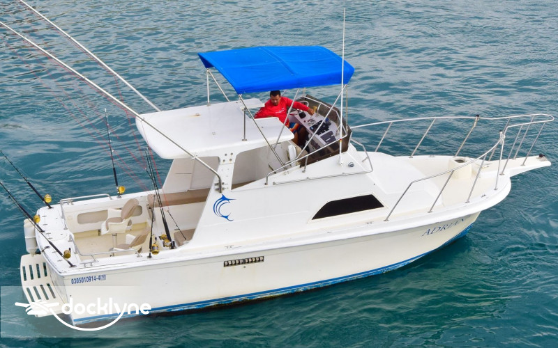 A standard cruiser with the best layout of boat in this size. Hard top shade and plenty of outside seating including TWO fighting chairs. The Adriana had a refit in 2020 New Cummins 315 Turbo engine, with a top speed of 28 knots, shade, cabin, clean & private bathroom, places to sit or lie down both inside and outside the cabin, live bait well, shi...