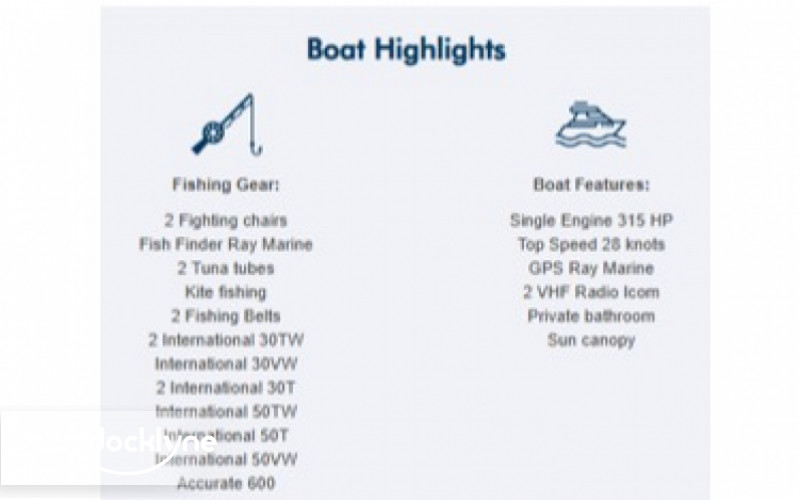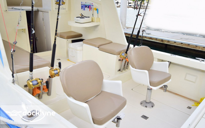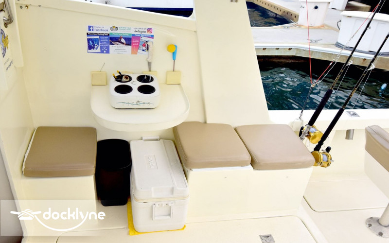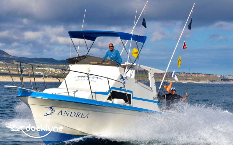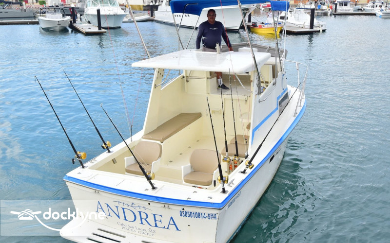 The Andrea had a full refit in 2018, including the addition of a New Cummins 315 Turbo engine, with a top speed of 28 knots. Onboard there is 2 fighting chairs, shade, cabin, clean & private bathroom, places to sit or lie down both inside and outside the cabin, live bait well, ship to shore radio, Tuna Tubes during Tournaments and GPS.