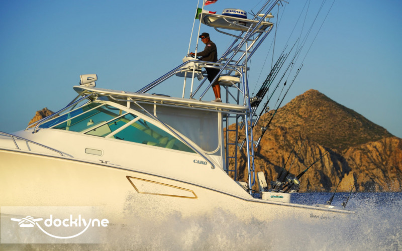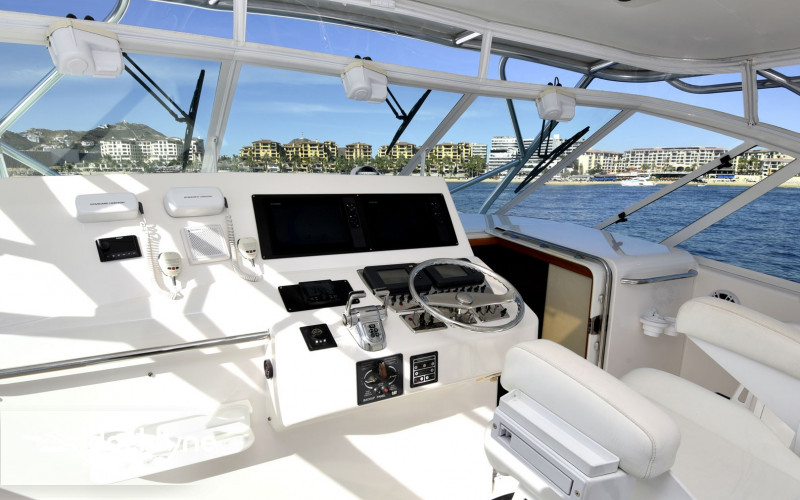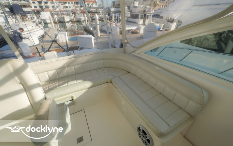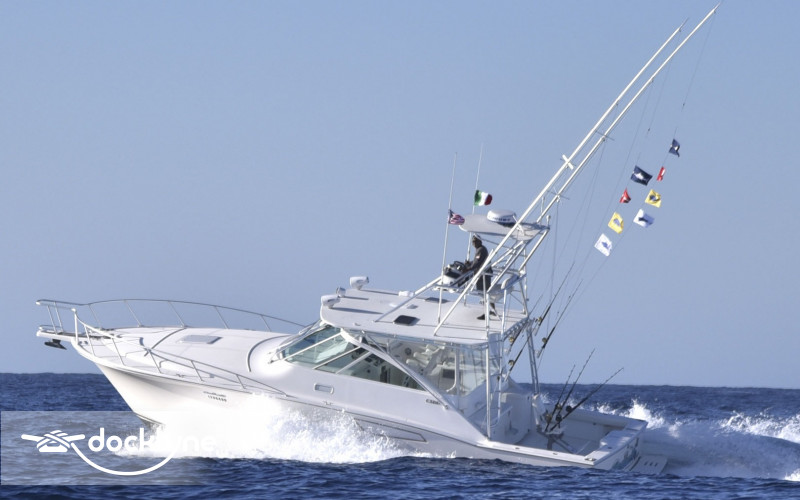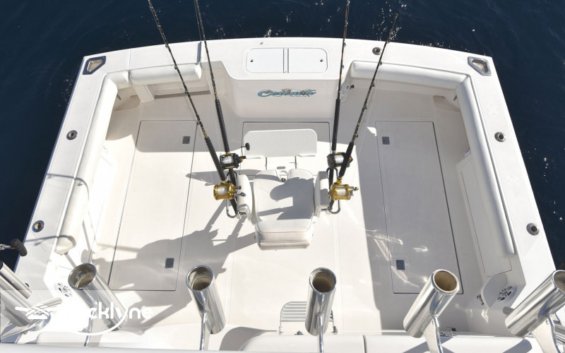 This 40' Cabo Express is a true fishing machine. Kept impeccably, and with specially added Ram Trim Tabs, it runs extra smoothly and reaches a top speed of 35 knots. It is powered by 700 HP Turbo Charged Twin Caterpillar Engines.