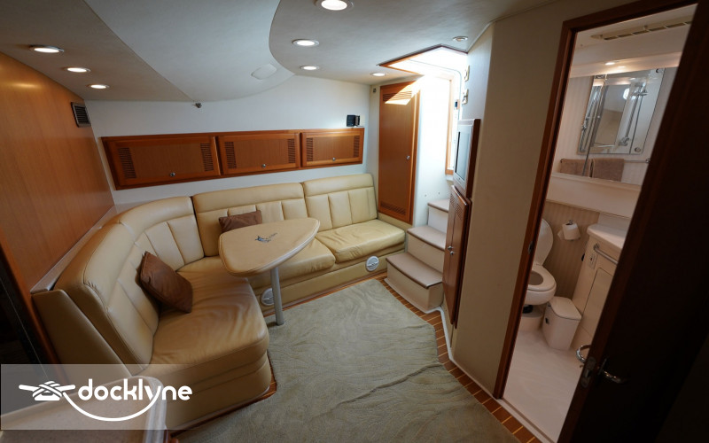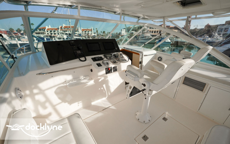 This vessel is expertly designed, allowing the deck space to be taken full advantage of. Als, it includes a chilled fish box to make sure your catch is kept fresh. A tuna tower allows the Captain an unbeatable vantage point for more chances at spotting fish or schools with his Gyro Stabilized Binoculars. Forward of the cockpit and a step up is the command deck, which has a full Eisenglass enclosure that is air-conditioned with L-Shaped seating and co-captain chair. The whole group can be part of the action while staying fresh.