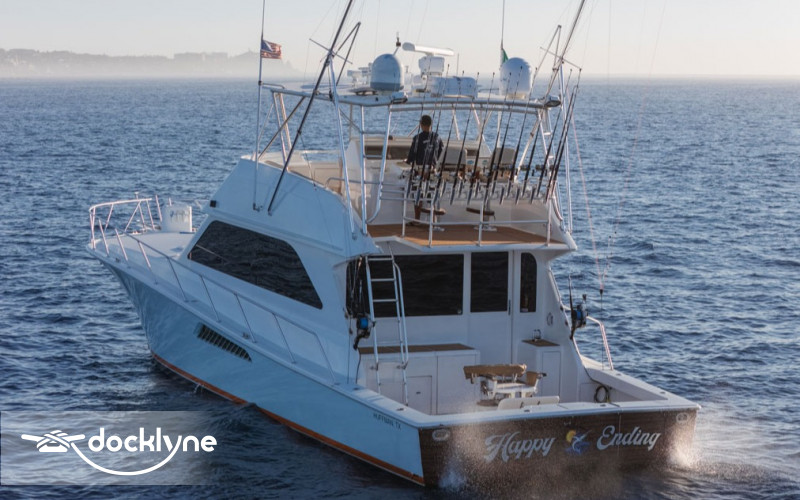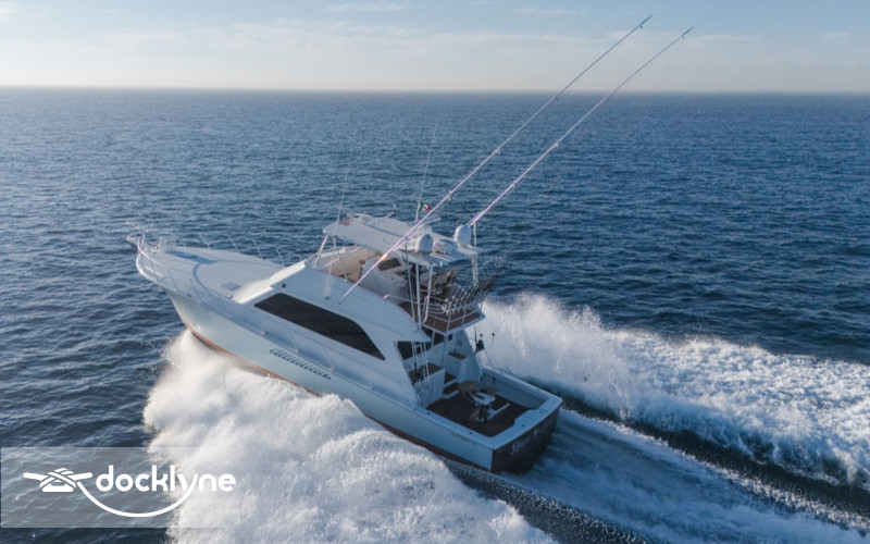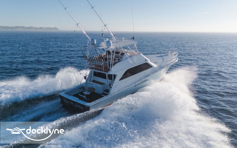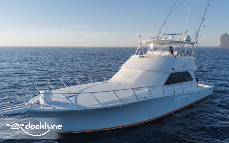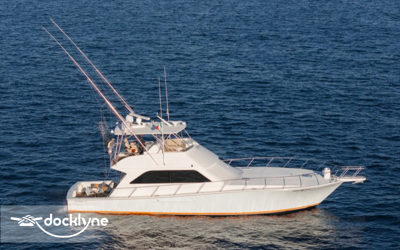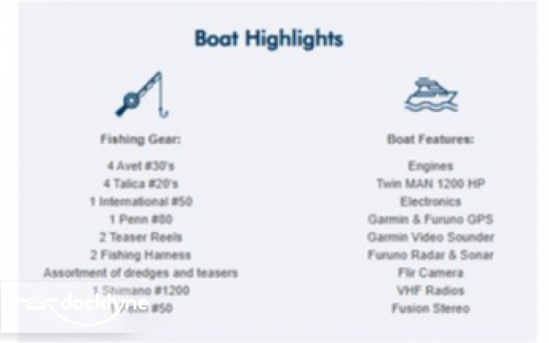 Three stateroom, galley up floorplan, arranged with the master suite amidships, a VIP stateroom forward and two full heads, both with separate stall showers. 200 square foot salon is spacious and includes starboard side peninsula galley and port side dinette. Outside, the large cockpit is fitted with a bait prep station, freezer, baitwells, tuna tubes and access to the engine room, new covering board non-skid, teak on deck, and fighting chair highlight the area. The flybridge is large and well appointed, peninsula console houses new electronics. Seating forward and to port provides guest seating, Seadec flooring compliments the area well and is easy on bare feet.