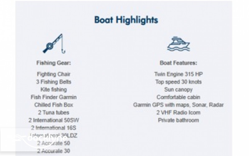 30ft Bertram Moppie "KARINA" -This is what our regular 31 FT Bertram clients have been waiting for - everything you enjoy about our standard Bertram's with the addition of a comfortable cabin. A step up from the 30 ft Bertram's due to being newer but still affordable. This vessel has a 12 foot beam and is well set out for fishing. Twin Cummins 315 HP diesel engines have this beauty cruising at 24 knots and a top speed of 30 knots. Only 20 Bertram Moppies were made and they are much sought after due to their incredible design and seaworthiness, especially in rough seas.