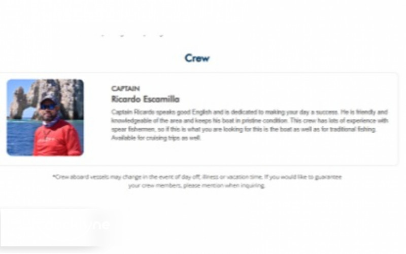 Crew aboard vessels may change in the event of day off, illness or vacation time. If you would like to guarantee your crew members, please mention when inquiring..