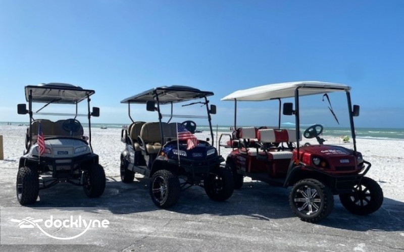 Our 6 passenger street legal golf carts are gas powered and offer a laid-back, easy and friendly way to explore the island in style!