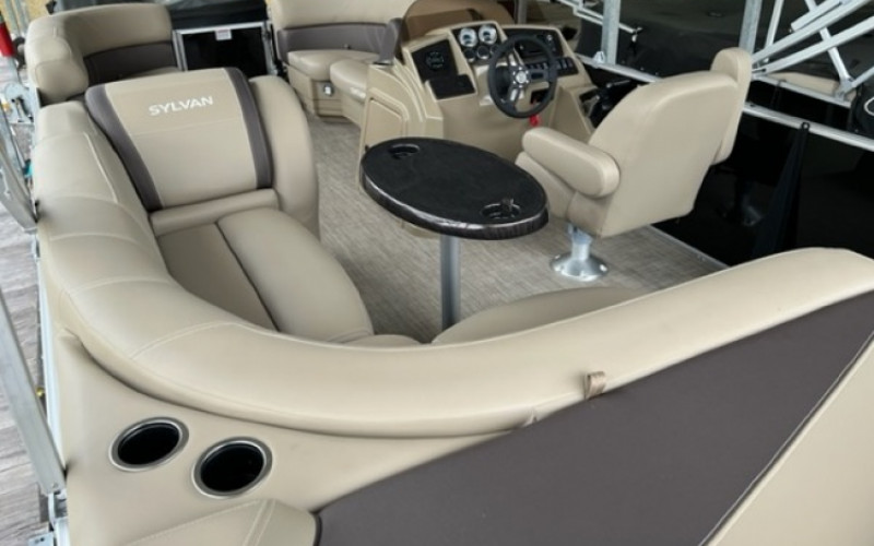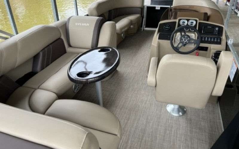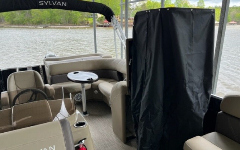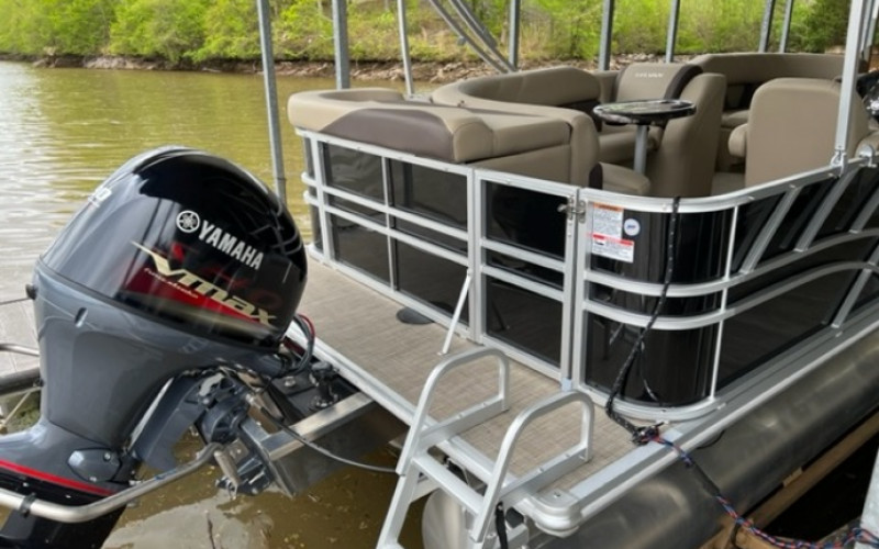Our first new boat, added in 2022, holds nine and is great for anyone with a smaller group. This boat had a new bimini and 7" Lowrance GPS unit installed in 2024 so you travel the lake and always know exactly where you are.. It is appointed with luxury interior seating, woven vinyl flooring, power steering, factory installed sound system, (BT, AM, FM). It is powered by a 90HP Yamaha VMAX SHO engine which is quick, quite, and extremely dependable. This boat includes a changing curtin for those that may want to get out of their swimsuit during the day. See our gallery for pictures that highlight this TriToons many great features.