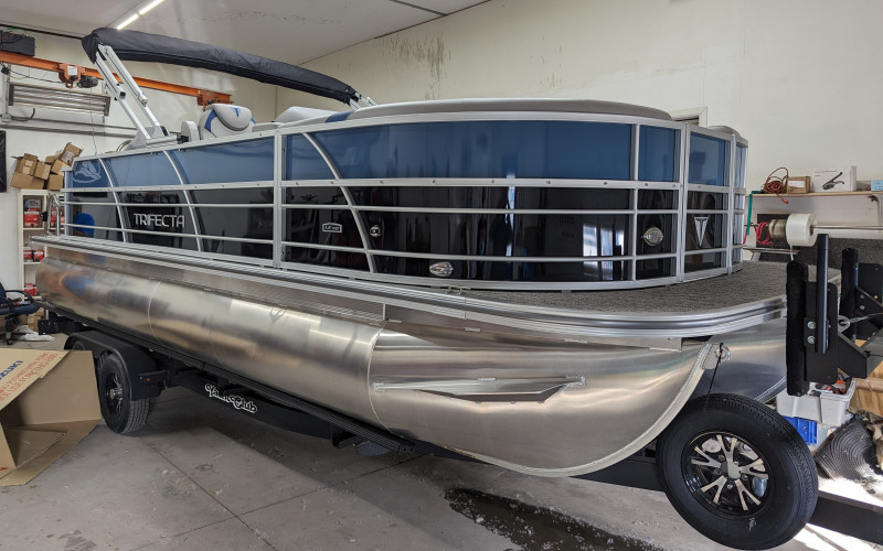 Bought new for the 2024 season, this 22 foot Trifecta LE tritoon is an ideal boat to comfortably take family and friends out on Lake Erie whether just to cruise, fish, or both. Premium furniture comfortably seats up to 8 passengers. Plenty of space for walking between seating and ample storage under every seat. A 115 HP Mercury outboard engine takes the boat 30-36 mph. Boat has a retractable bimini that provides shade to the back half of the boat. Two rear fishing swivel seats. Premium Bluetooth audio system. Color GPS and depth finder. 5 foot folding stainless steel swim ladder. Large rear livewell and built in tackleboxes.