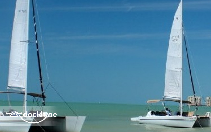 Off the Hook Adventures, have been offering Marco Islanders and visitors exceptional ecp excursions on their beautiful 27ft sailing catamaran for over 9 years. This summer They are pleased to announce that the have added another sailing catamaran to their fleet, enabling them to offer double the fun for couples, families and now even groups of up to twelve people. The sailing catamarans are both very comfortable and perfect for relaxing. A shaded canopy beneath the boom covers the entire back deck, which has cushioned seating with back support stretching along each side, and offers a welcome respite from the hot Florida sun. But if catching some rays is what you have in mind there are two large trampolines up front with plenty of sunbathing space for everyone. Off the Hook Adventures' boats also feature a large cooler with an assortment of sodas, bottled water and light snacks including chips, crackers and cookies for your enjoyment.
