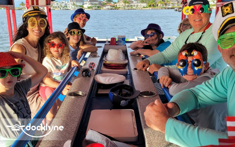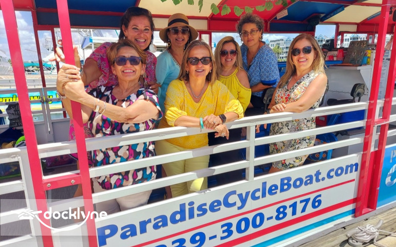 ENJOY MARCO ISLAND ON THE WATER WITH FAMILY AND FRIENDS Come aboard our RED, white and BLUE custom built 35' pontoon catamaran and experience the beauty of Marco Island as you cruise the Marco River into breathtaking bays and waterways. Experience our bottlenose dolphins, (we know many by name), abundant ecolife, red mangroves, magnificent marinas, celebrity homes, as you take in the spectacular sights and gulf breezes. We add fun along the way as we crank up the tunes, as you connect with family and friends engaging in LOCAL ISLAND TRIVIA, as you learn more about the island and WIN LOCAL PRIZES. Experience Marco Island's only direct drive human powered paddle wheel. Enjoy the seating at our Cyclebar with our memory foam cushion seats and cycle, however CYCLING IS OPTIONAL.You can cycle as much as you want or not at all. WE HAVE A MOTOR ON BOARD!!