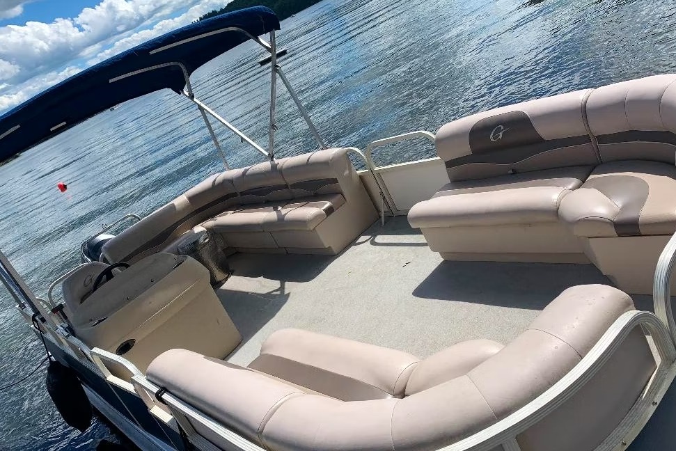 The Grumman is another great option for groups looking to enjoy a relaxing day out on Copake Lake! This boat is 22 feet long with a maximum capacity of 14 passengers and plenty of space to pack all your essentials. Open the Bimini top to cast shade over the back part of the boat or close it up for optimal sunshine.