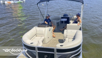 New in 2021, our Cypress Cay tri-toon has a great setup and plenty of power for your party of up to 10 passengers (or 1395 pounds). The large tri-toon hull allows this boat to ride high and dry and to plane quickly for optimal performance in a range of conditions. Comes equipped with plenty of shade, stereo, depth-finder and a swim ladder.