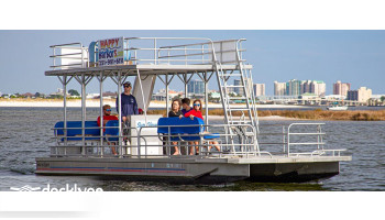 The double deck pontoon with slide, also commonly referred to as a "Party Barge" because of the fun that is had aboard them! Perfect for the large group or family of 8 or more, with both shade and full sun seating. Make a day of cruising around all the local islands, or stopping in at one of the many hot spot bars for a bite to eat or drink. Our fr...