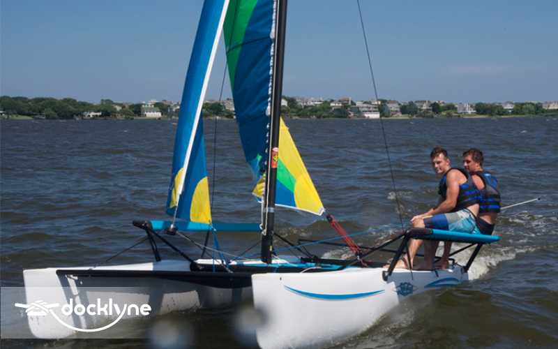 Our most popular rental, these 17′ catamarans have a boom-less main, a roller furling jib, wing seats and a forward trampoline for comfort. The Getaway offers fun and fast sailing for crews of 2-4 adults!