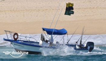 Our aluminum skiff "runabouts" feature V-hull design, a 40HP motor, console steering, and bench seating for up to 5.